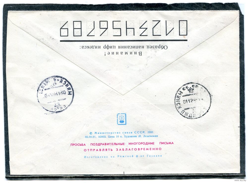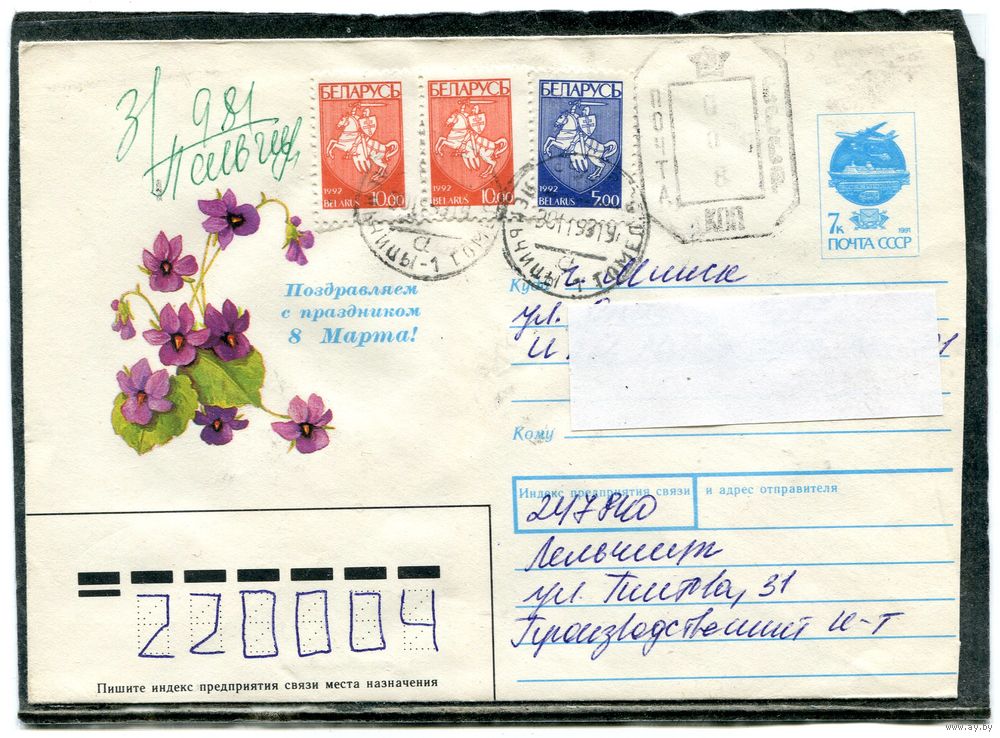 Беларусь. ХМК. Конверт п.п. Заказное. Штемпель переоценки. Провизорий. Гашение Лельчицы 1993