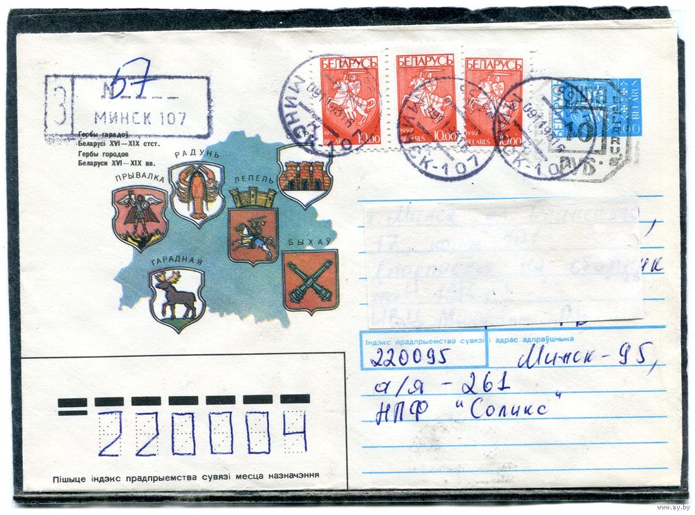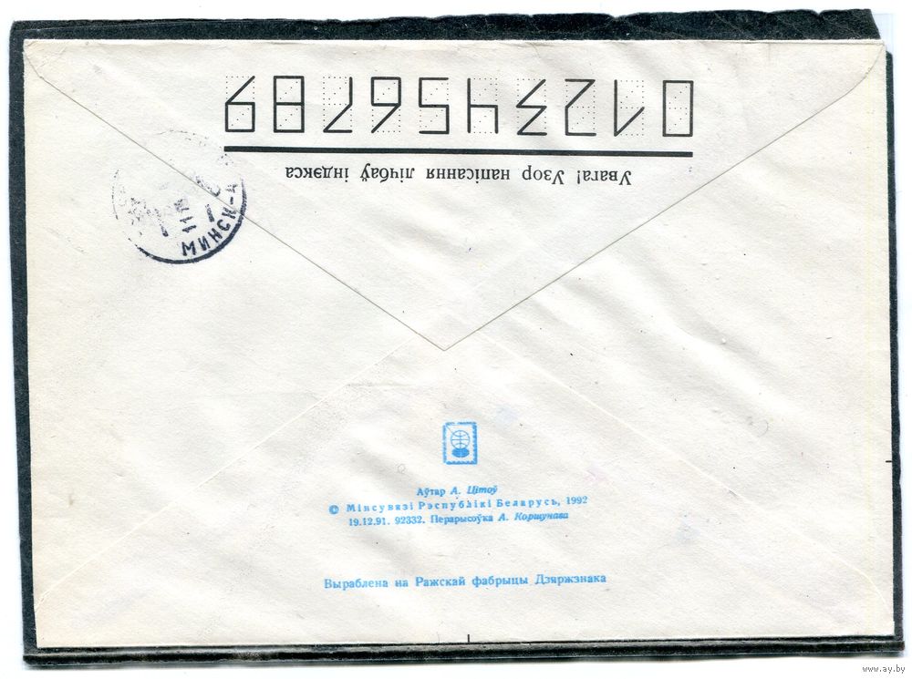Беларусь. ХМК. Конверт п.п. Заказное. Штемпель переоценки. Провизорий. Гашение Минск 1993