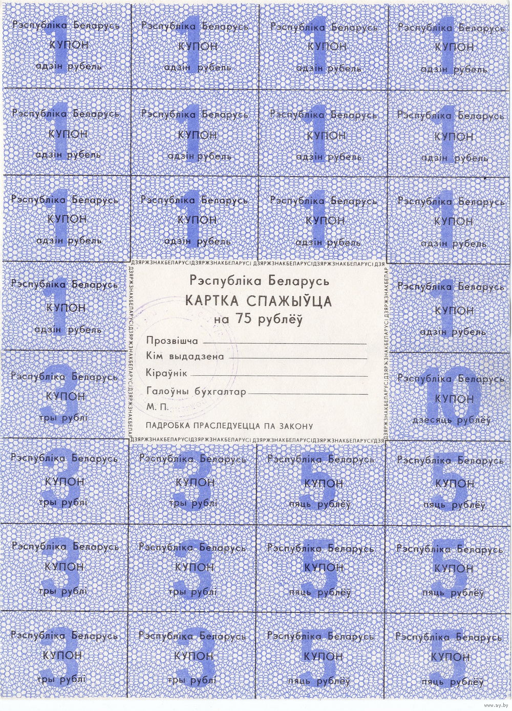Беларусь, карта потребителя 75 рублей, 1992 г., синяя