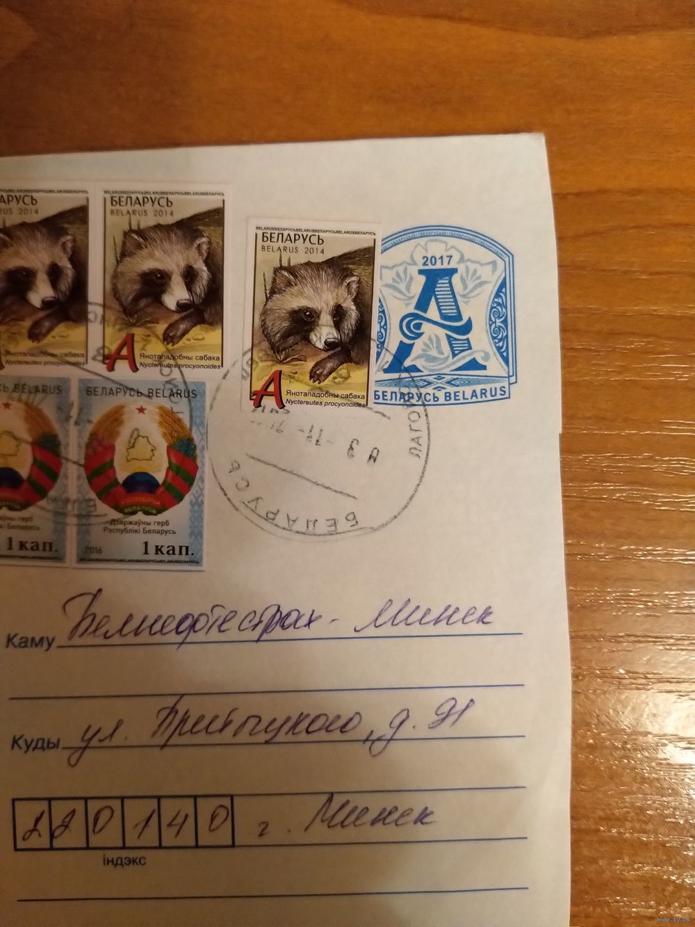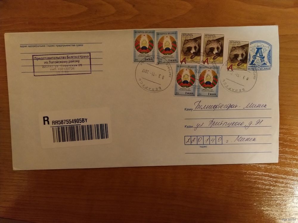 Беларусь конверт деформированный штемпель Логойска фауна