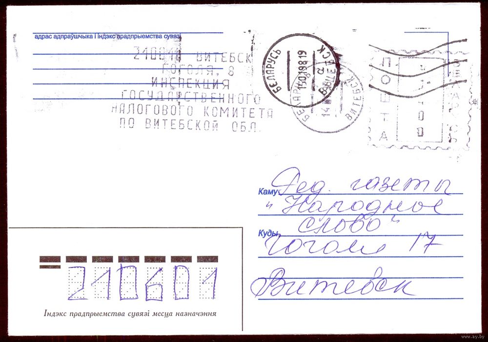 Беларусь конверт франкировальный машинный штемпель