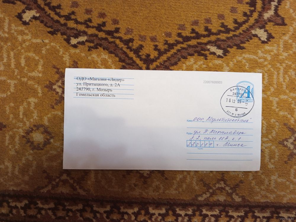 Беларусь конверт прошедший почту деформированный штемпель гашение Мозырь Гомель обл