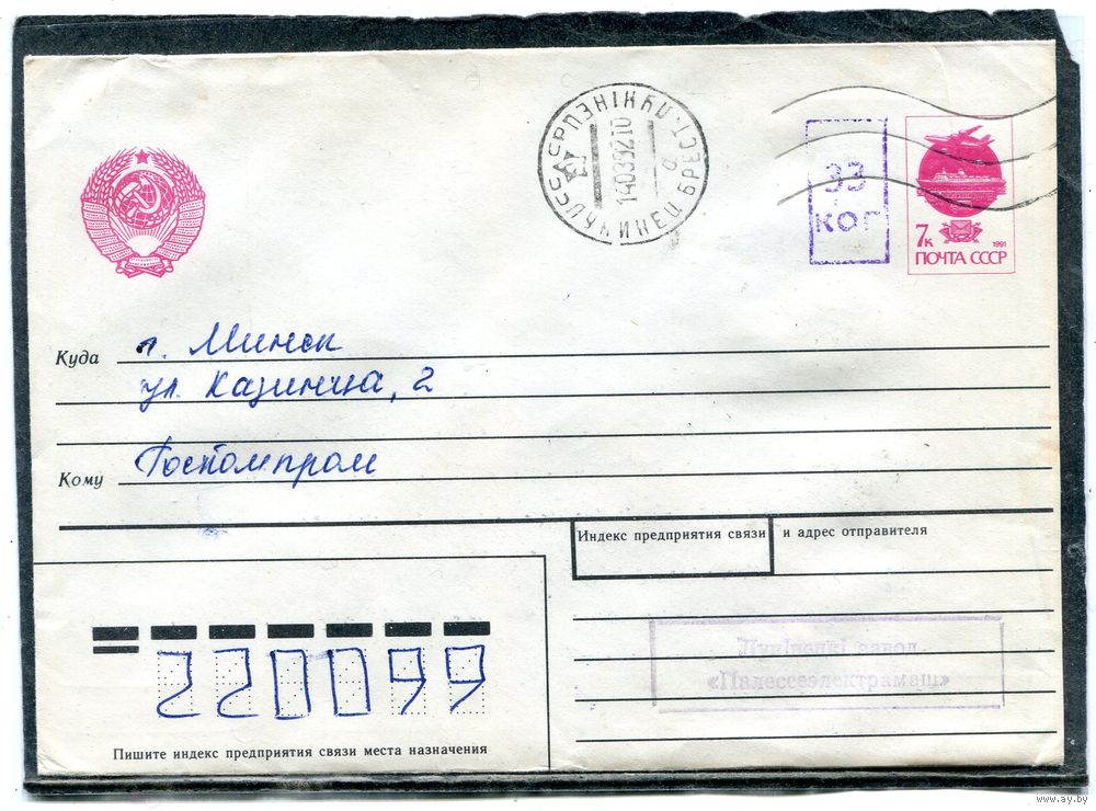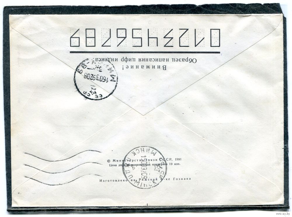Беларусь. МК. Конверт п.п. Провизорий. Гашение Лунинец 1992
