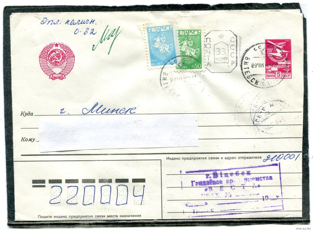 Беларусь. МК. Конверт п.п. Провизорий. Гашение Витебск 1993