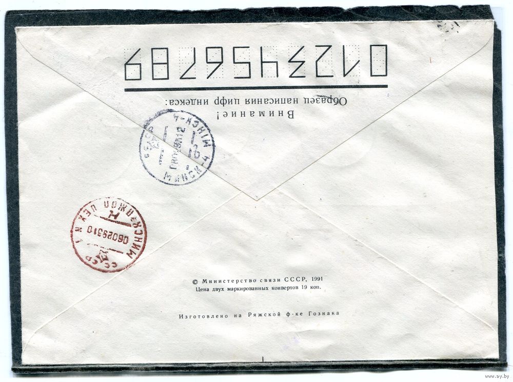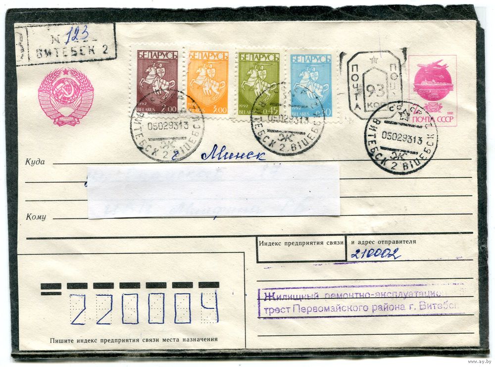 Беларусь. МК. Конверт п.п. Заказное. Провизорий. Гашение Витебск 1993