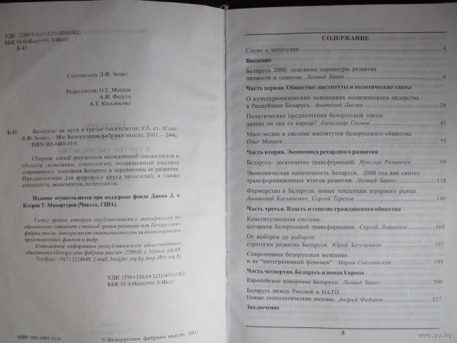 Сборник статей специалистов в области политики, экономики и социологии с анализом состояния Беларуси и перспектив ее развития