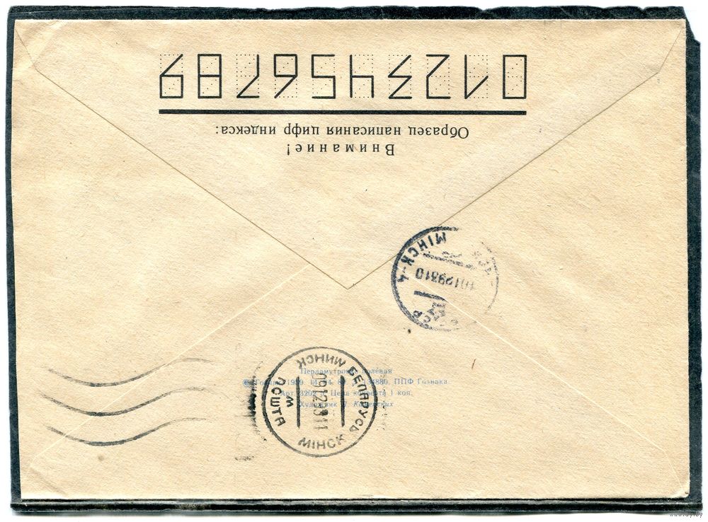 Беларусь. НМК. Конверт п.п. Провизорий. Бабочка. Гашение Гринки, Гродненской области 1993