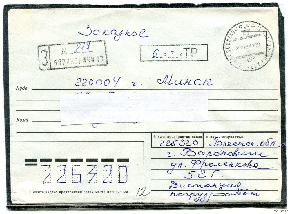 Беларусь. НМК. Конверт п.п. Заказное. Провизорий. Гашение Барановичи 1993
