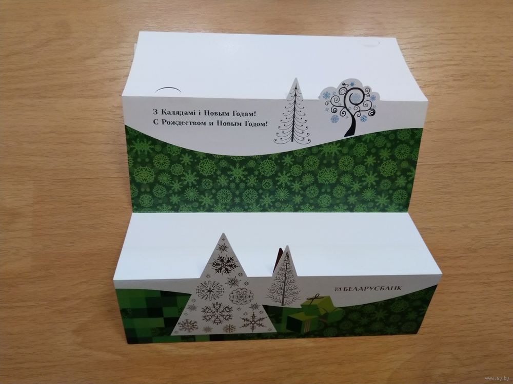 Беларусь открытка от Беларусбанка с Рождеством и Новым годом поздравление на вкладыше