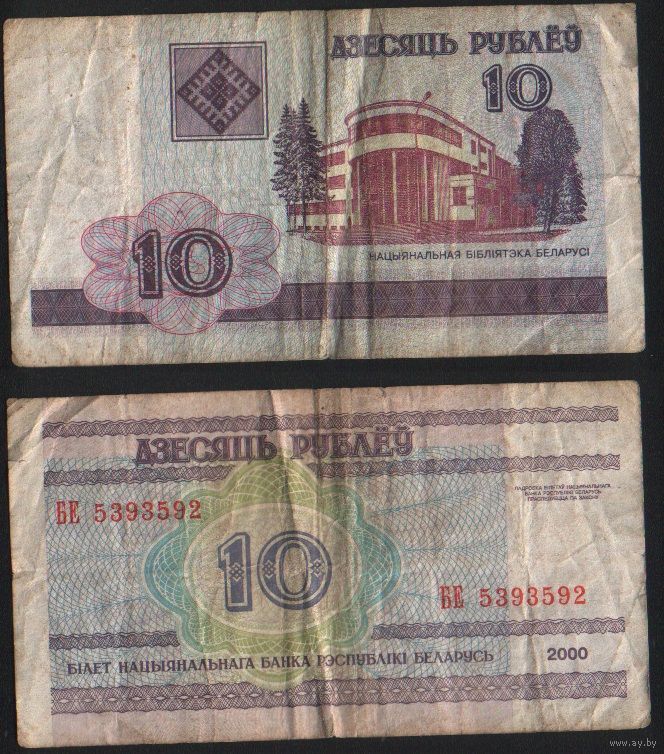 Беларусь P-23a.1 10 рублей 2000 год (вып.01.01.2000) (БА-БГ,БЕ,БЗ,БИ) ' БЕ 5393592 (393) ТОРГ