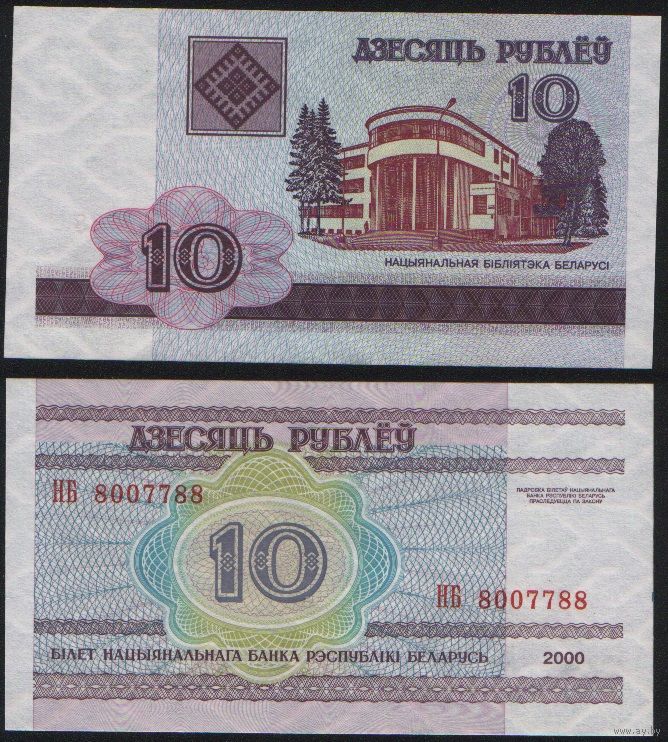 Беларусь P-23a.3 10 рублей 2000 год (вып.2003) (НА-НВ) ' НБ 8007788 (00-77-88)(8-88) ТОРГ