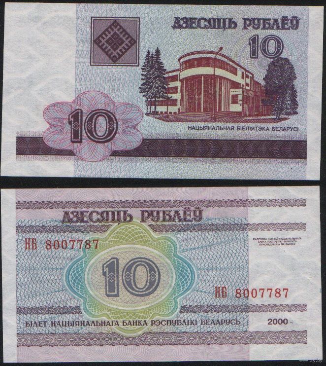 Беларусь P-23a.3 10 рублей 2000 год (вып.2003) (НА-НВ) ' НВ 8007787 (00-77)(7787)(77-7) ТОРГ