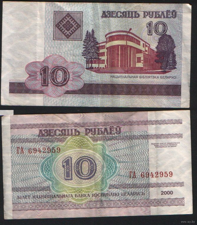 Беларусь P-23a.5 10 рублей 2000 год (вып.2006) (ГА-ГД) ' ГА 6942959 (959)(9-9-9) ТОРГ
