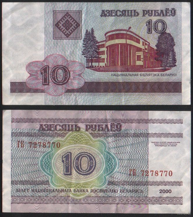 Беларусь P-23a.5 10 рублей 2000 год (вып.2006) (ГА-ГД) ' ГБ 7278770 (78-77)(7-7-77) ТОРГ