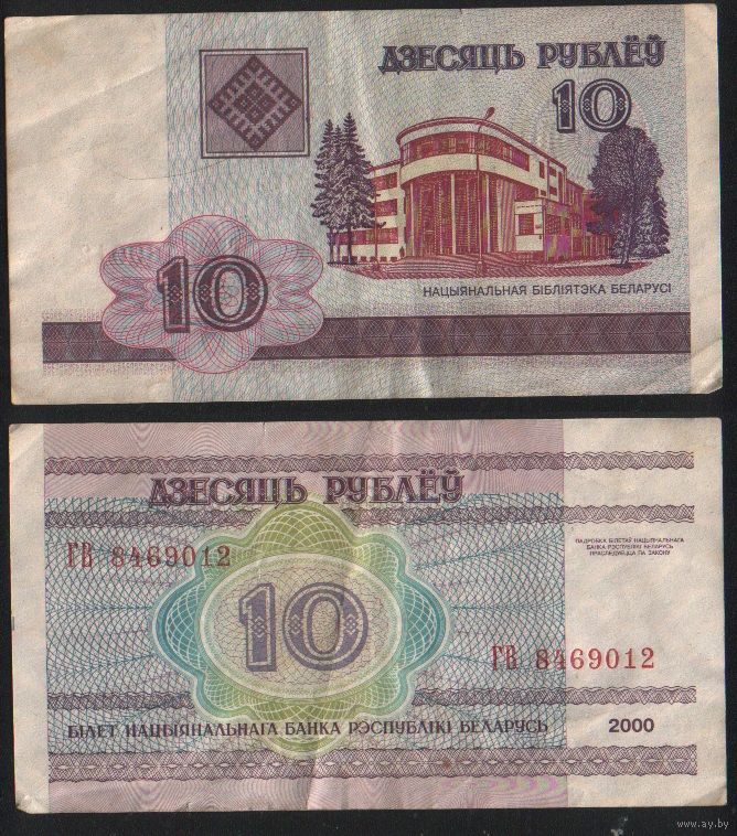 Беларусь P-23a.5 10 рублей 2000 год (вып.2006) (ГА-ГД) ' ГВ 8469012 ТОРГ