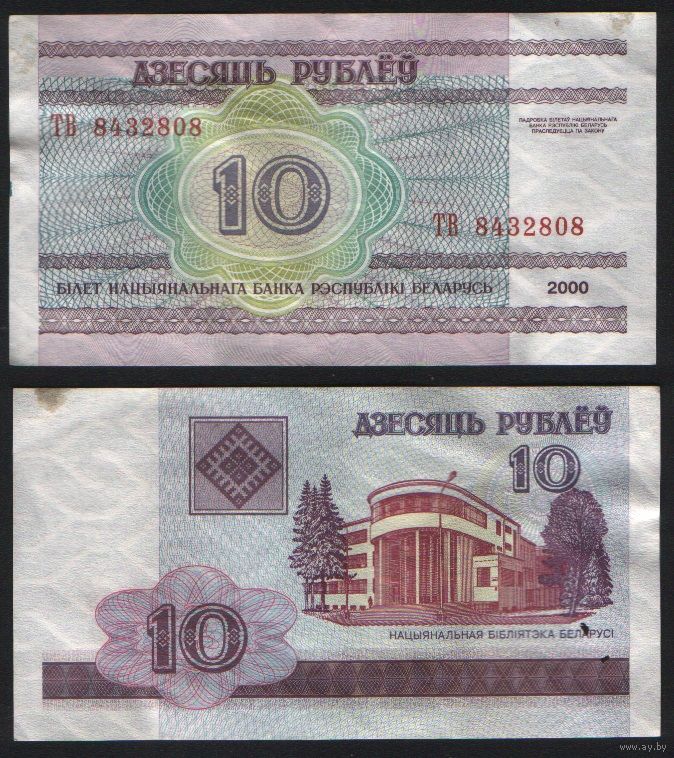 Беларусь P-23a.7 10 рублей 2000 год (вып.2008) (ТА-ТГ) ' ТВ 8432808 (808)(8---8-8) ТОРГ