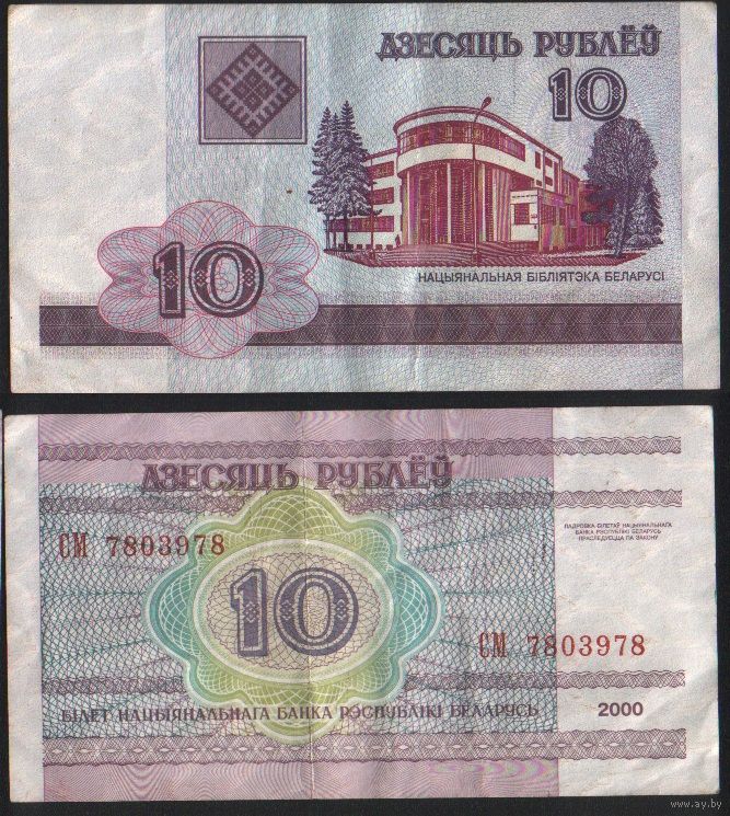 Беларусь P-23a.8 10 рублей 2000 год (вып.2009) (СМ,СН,СП,СР) ' СМ 7803978 (78-78) ТОРГ