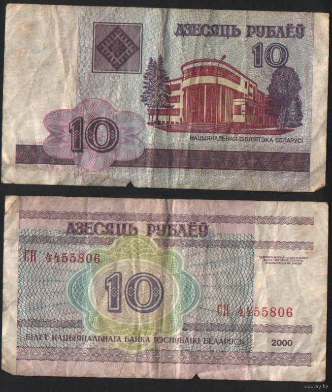 Беларусь P-23a.8 10 рублей 2000 год (вып.2009) (СМ,СН,СП,СР) ' СН 4455806 (44-55) ТОРГ