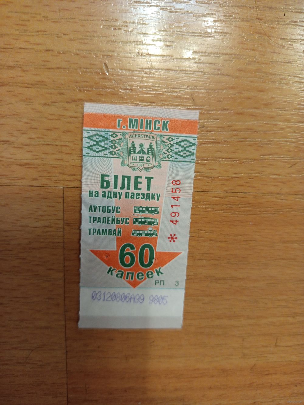 Беларусь талон на проезд Минск серии РП (1-л1)