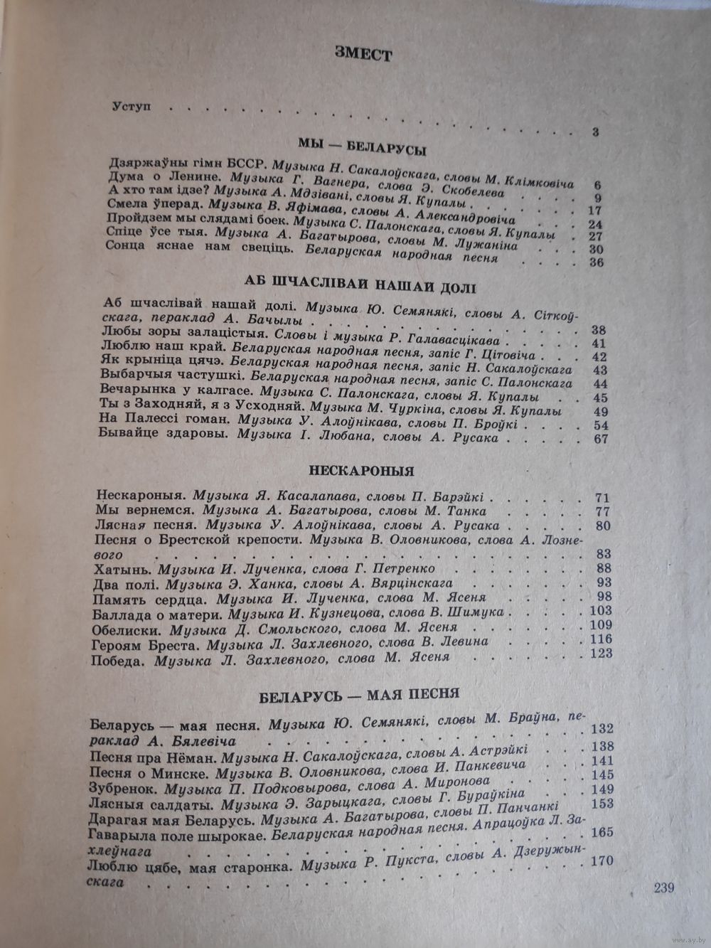 Беларусь у песні [Ноты] / склалі: В. Л. Аўраменка, Л. А. Раманоўская.