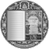 в центре – разворот Барколабовского ирмологиона с изображением титульного листа. По окружности монеты – орнаментальные элементы по мотивам титульного листа ирмологиона. Внизу – надпись: БАРКАЛАБАЎСКІ ІРМАЛОЙ. Вверху – два ангела, держащие медальон с изображением Свято-Троицкого храма Кутеинского монастыря.