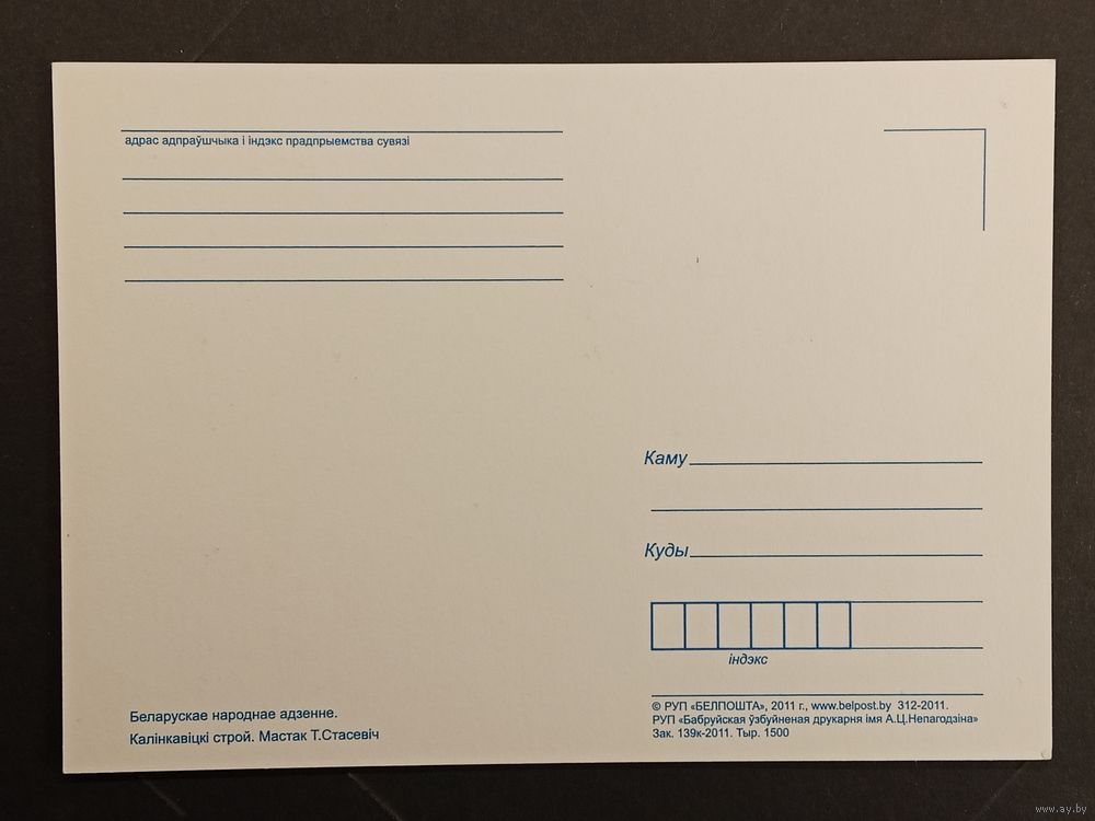 Пересылка заказным или 1 класс Белпочтой.