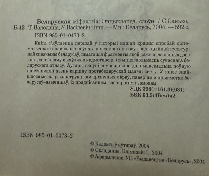Беларуская міфалогія Энцыклапедычны даведнік мiфалогiя