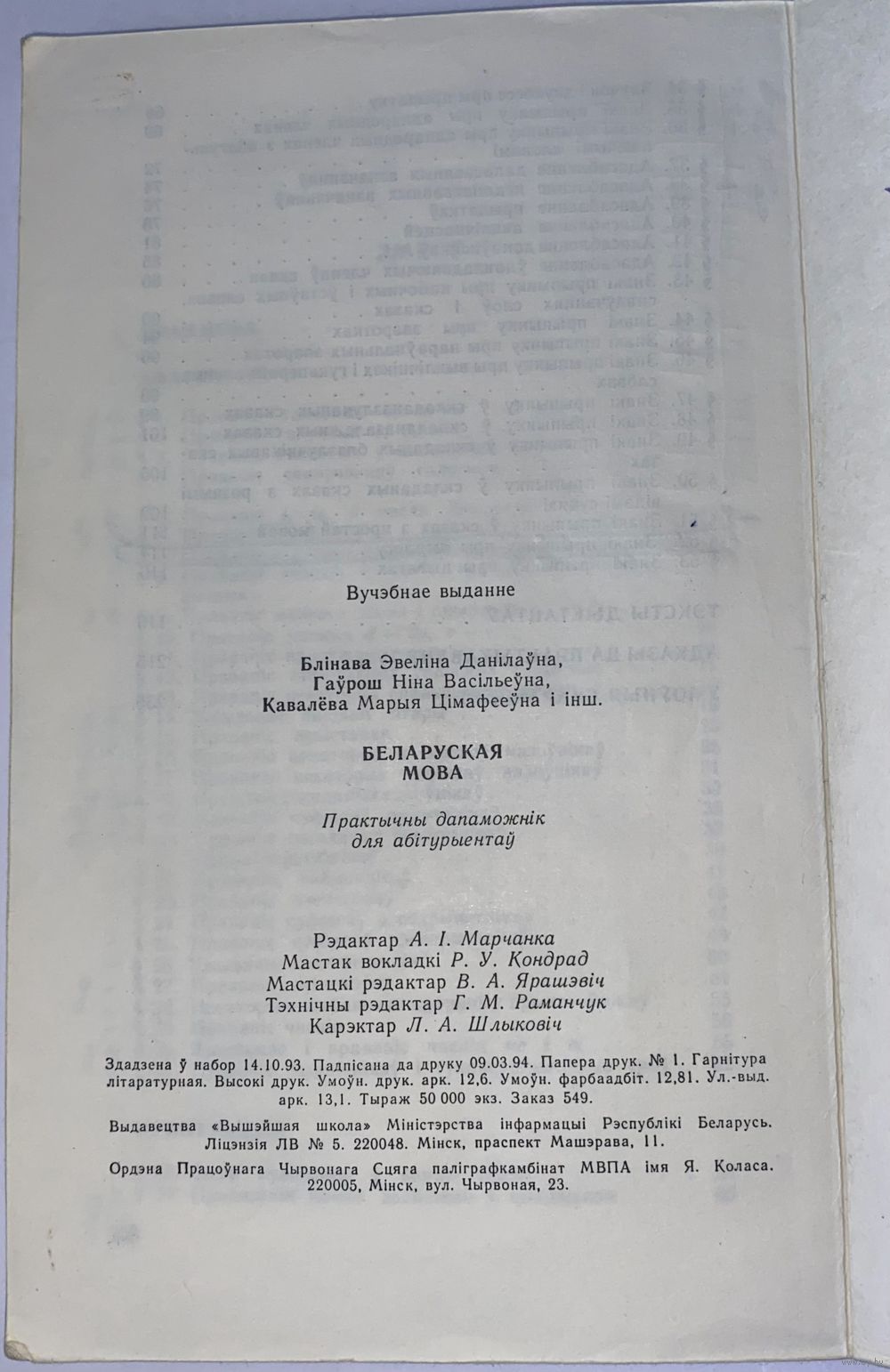 Кніга "Беларуская мова. Практычны дапаможнік для абітурыентаў"