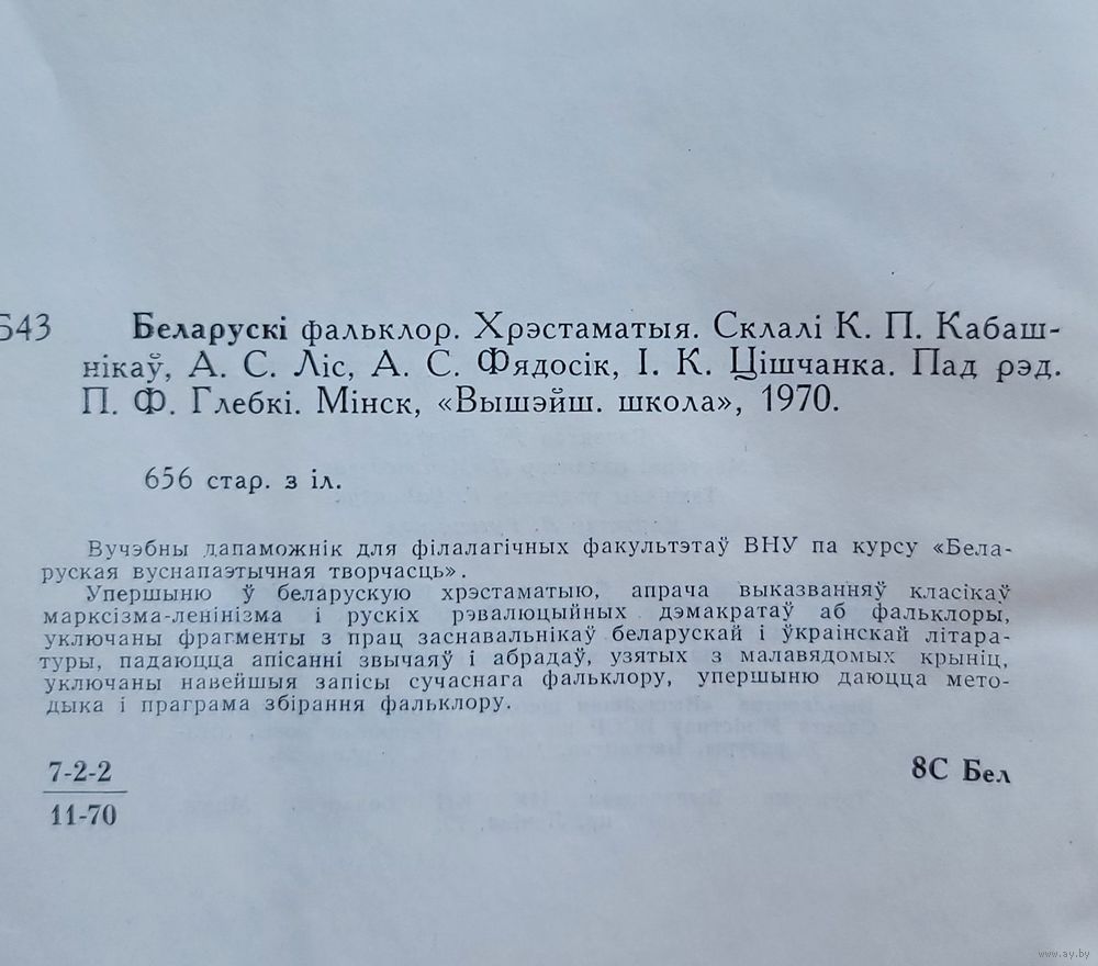 Беларускі фальклор Хрэстаматыя 1970 Беларускi