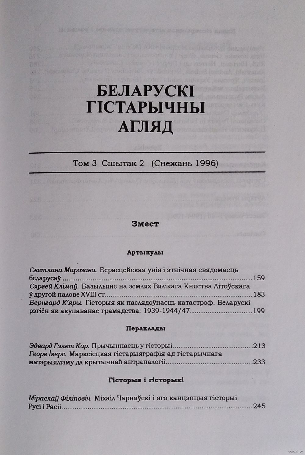 Беларускі гістарычны агляд : навуковы часопіс. Заснавальнік Г. Сагановіч. Том 3. Сшытак 2. Снежань 1996 г. Мінск Вільня : Рэдакцыя БГА. 1996 г. 175 с. Мяккая вокладка.