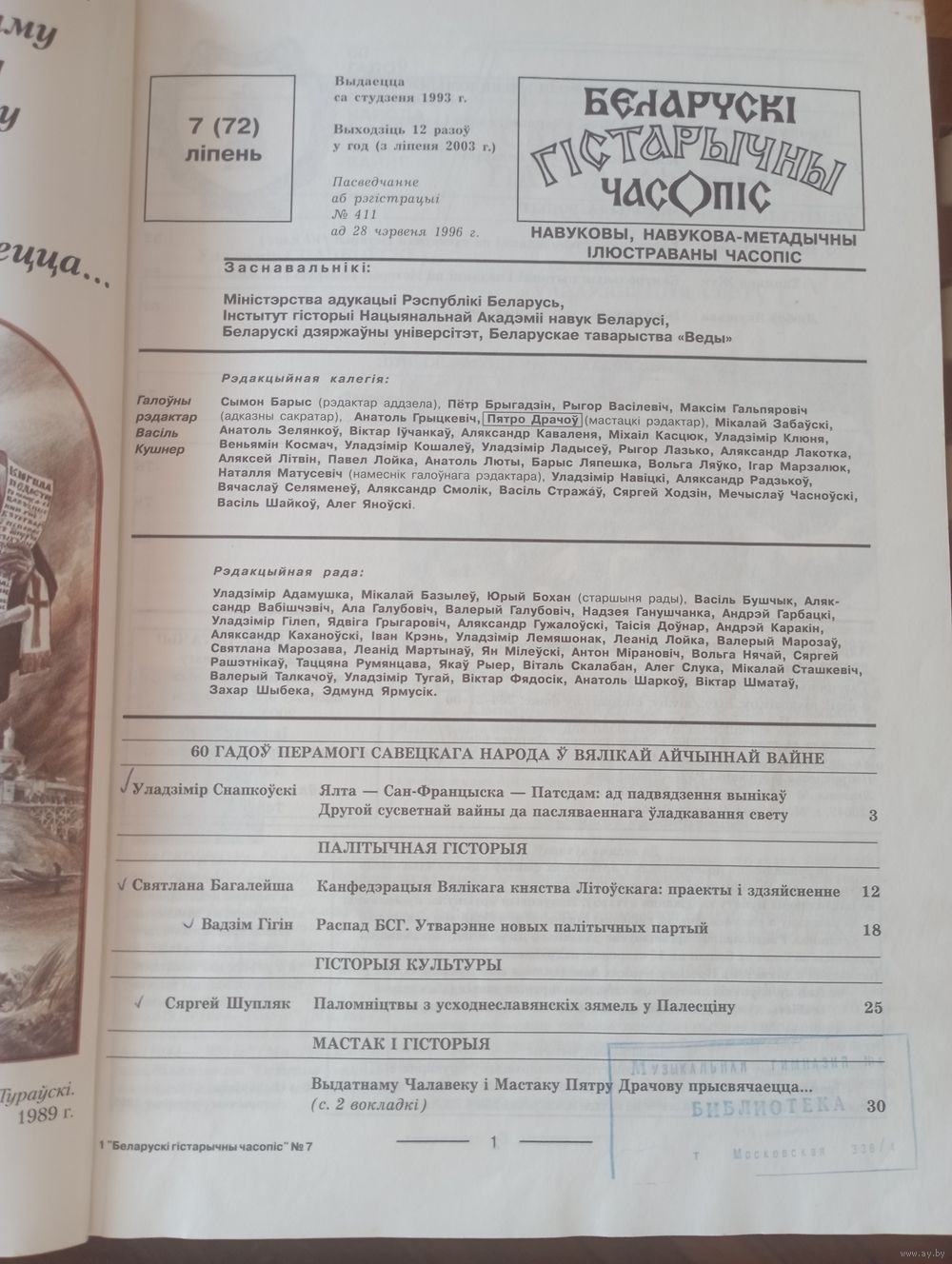 Беларускі гістарычны часопіс 7 2005