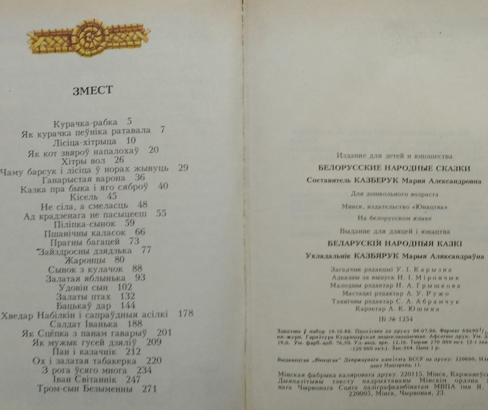 Вялікі фармат. 304 стар. Мастак В. I. Валынец. У зборнік увайшлі найлепшыя вядомыя беларускія народныя казкі ў апрацоўцы Алеся Якімовіча: «Лісіца-хітрыца», «Пшанічны каласок», «Жаронцы», «Сынок з кулачок», «Удовін сын», «Іван Світаннік» і іншыя.
