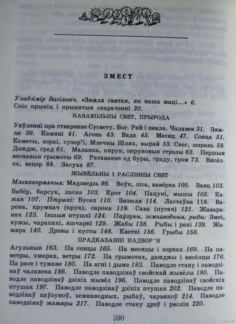 Тыраж 3000 экз. 392 стар. Як прадказаць надвор’е і ўраджай, як засцерагчыся ад хваробы і ад «благога вока»?.. На гэтыя і на безліч іншых пытанняў адказваюць прыкметы і павер’і — частка бясцэннай духоўнай спадчыны беларусаў. Гэтая кніга — першая з падрыхтаванага да выдання трохтомніка, своеасаблівай энцыклапедыі народнай мудрасці і фантазіі. Есць штампы.