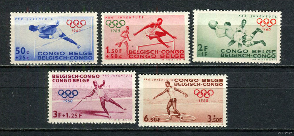 Бельгийское Конго - 1960 - Лентние Олимпийские игры - (пятна на клее и повреждения на лицевой стороне) - [Mi. 360-364] - полная серия - 5 марок. MNH. (Лот 34JK)-TG2P39