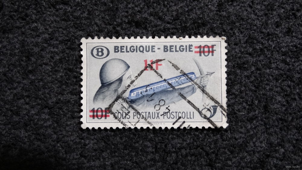 На изображении показана бельгийская почтовая марка номиналом 10 франков для посылок (Colis Postaux - Postcolli).
