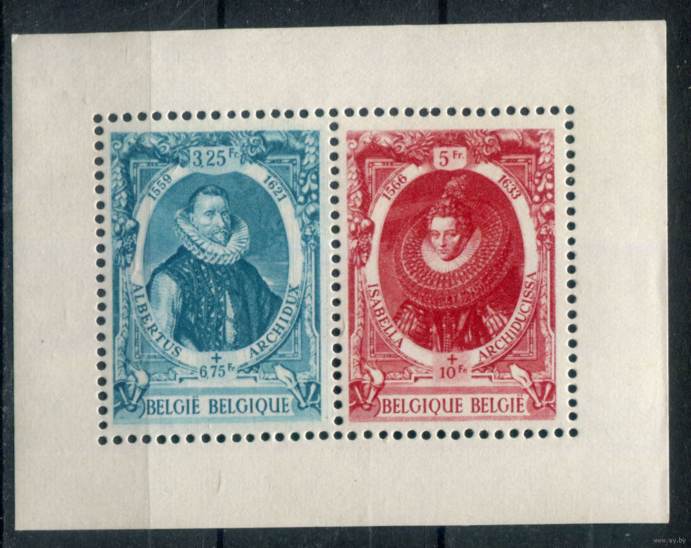 Бельгия - 1942г. - известные люди, правители, картины, борьба с туберкулёзом - 1 блок - полная серия, MLH, лёгкое повреждение уголков [Mi bl. 17]. #2-Be-94-KS-2