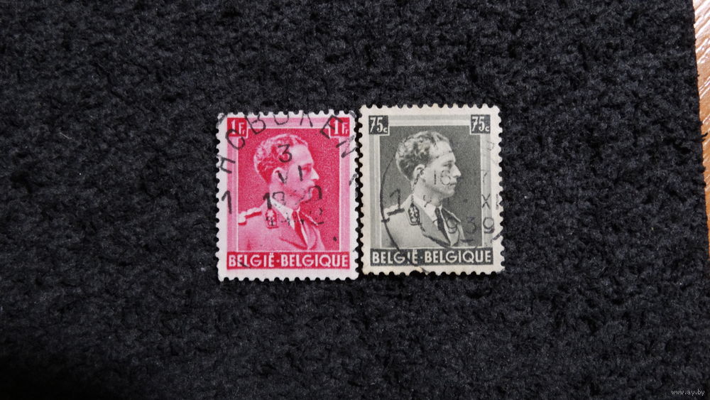 На изображении, вероятно, изображены две бельгийские почтовые марки с портретом короля Леопольда. Однако, без полезных результатов поиска, невозможно предоставить конкретную информацию о годе выпуска, номинале или личности изображенного короля.