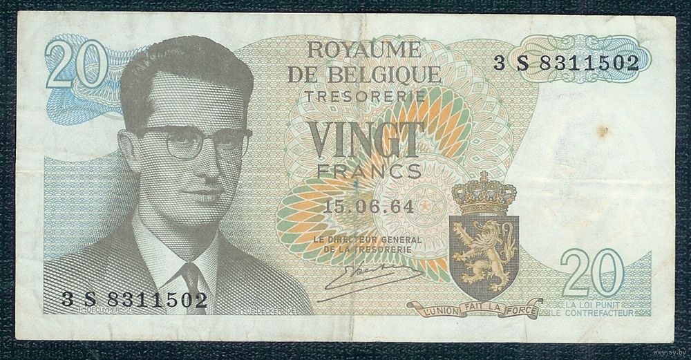 Бельгия, 20 франков 1964 год.