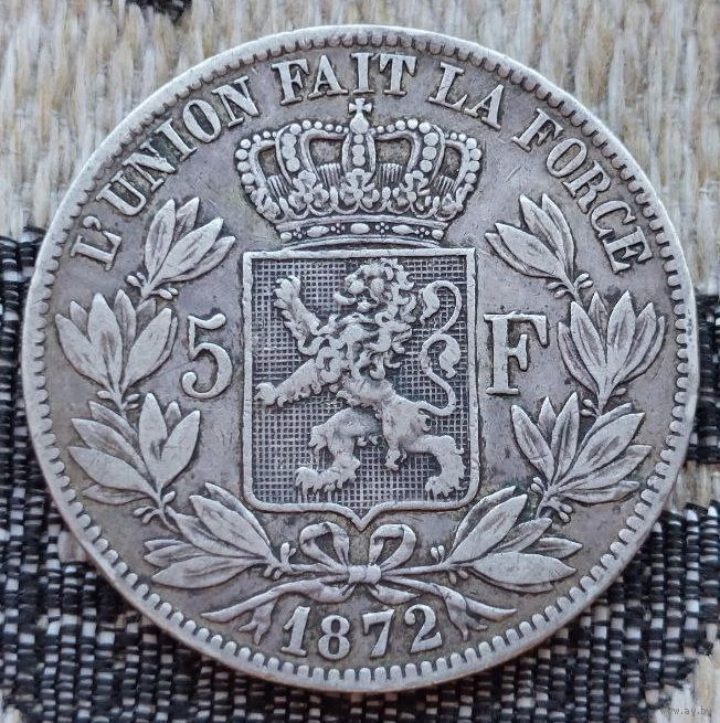 Бельгия 5 франков 1872 года. Леопольд II. Серебро! Сторгуй за свою цену, предложи обмен! S80
