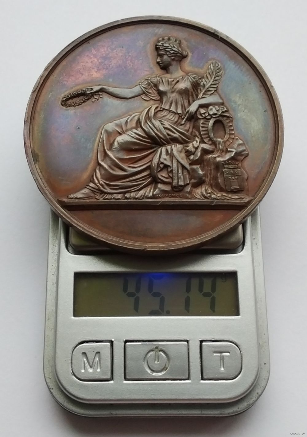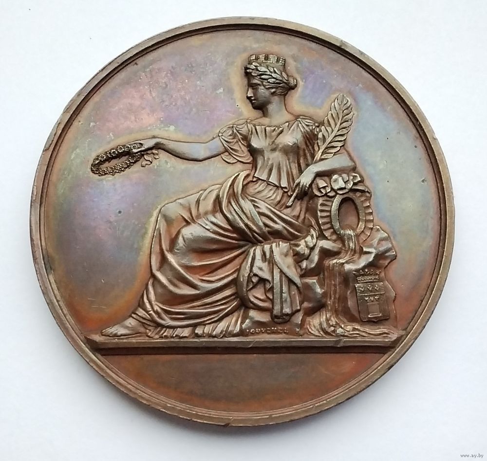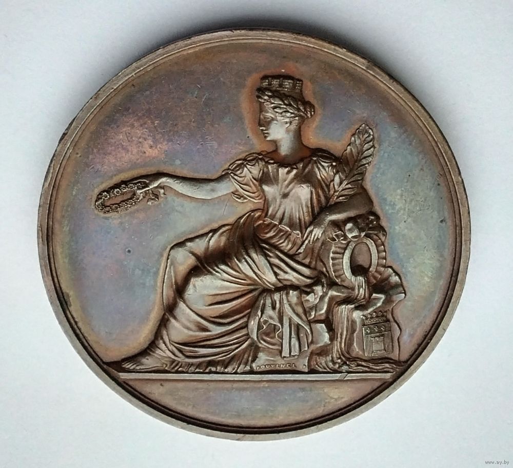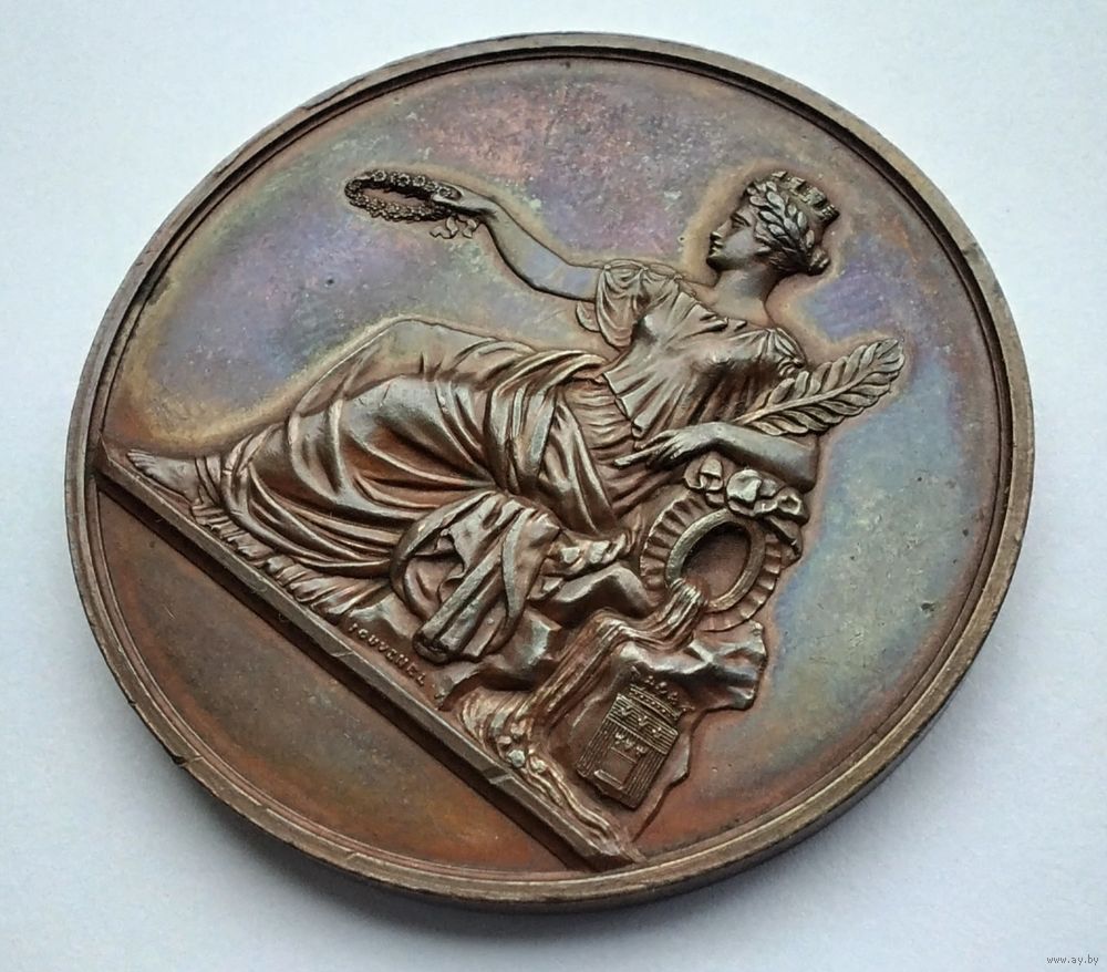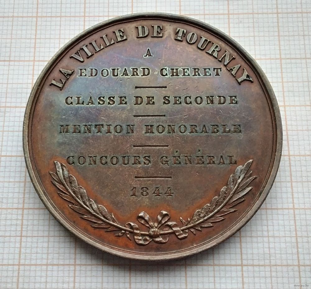 Бельгия, город Турне. Наградная, конкурсная медаль 1844 г. Врученная, именная. Медный сплав. Радужная патина. Диаметр - 48 мм. Вес - 45 гр. Оригинал. Оплата на карту Беларусбанка.