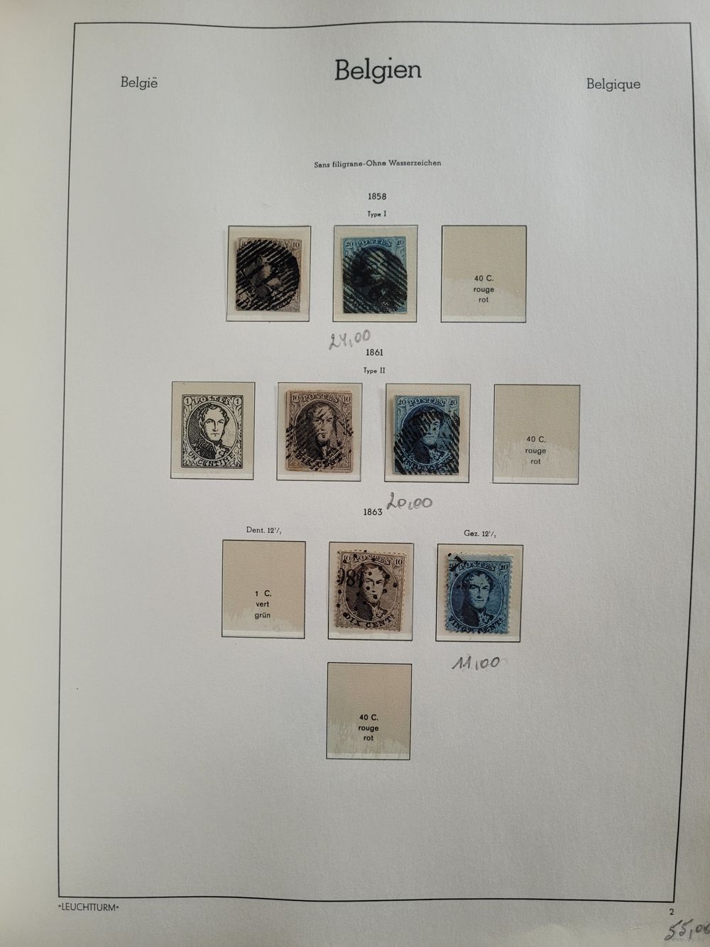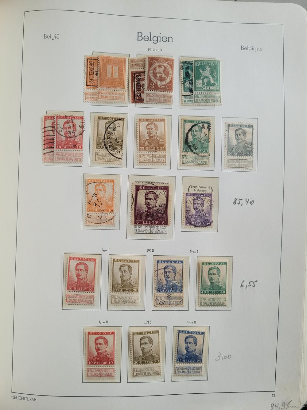 Коллекция марок Бельгии за 1849-1999 годы. Много полных серий, чистых, комплектность - от 80 до 95%. Оценочная каталожная стоимость марок ранней Бельгии только в одном альбоме Leuchtturm составляет более 1700 евро!