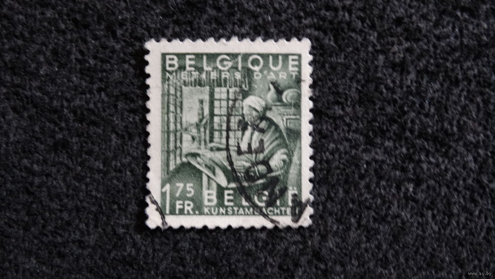 Представленная почтовая марка — это марка Бельгии номиналом 1,75 франка из серии, посвященной национальной промышленности или ремеслам, выпущенная в 1948 году. На ней изображена женщина, занимающаяся плетением кружева.