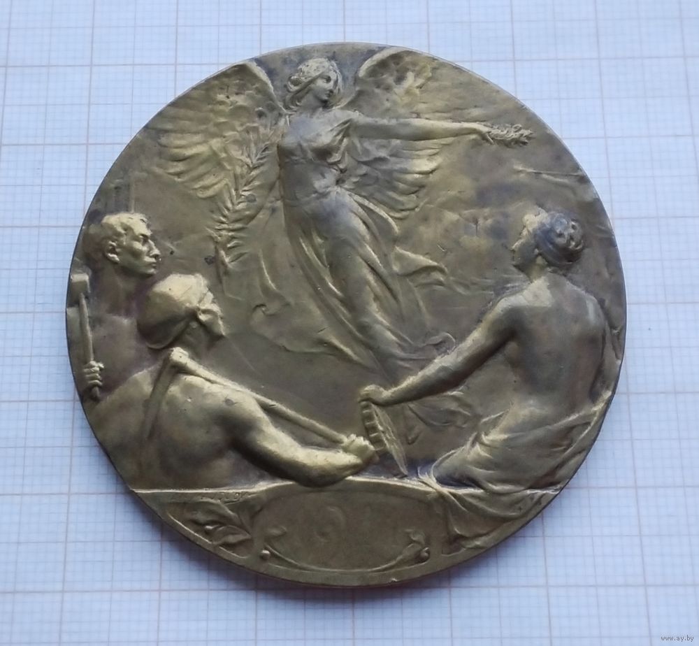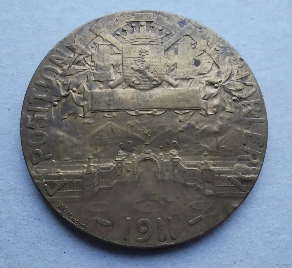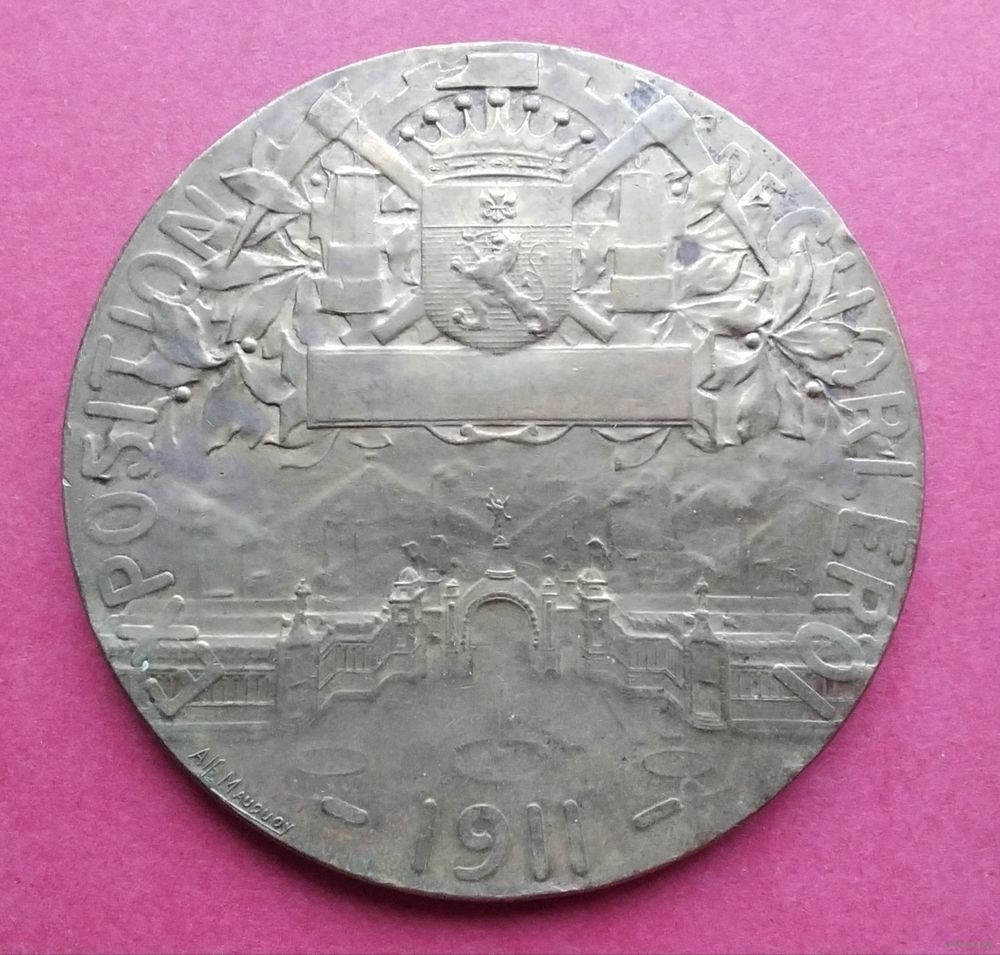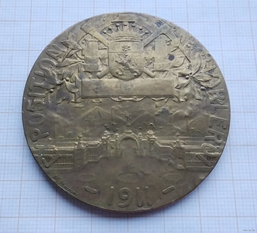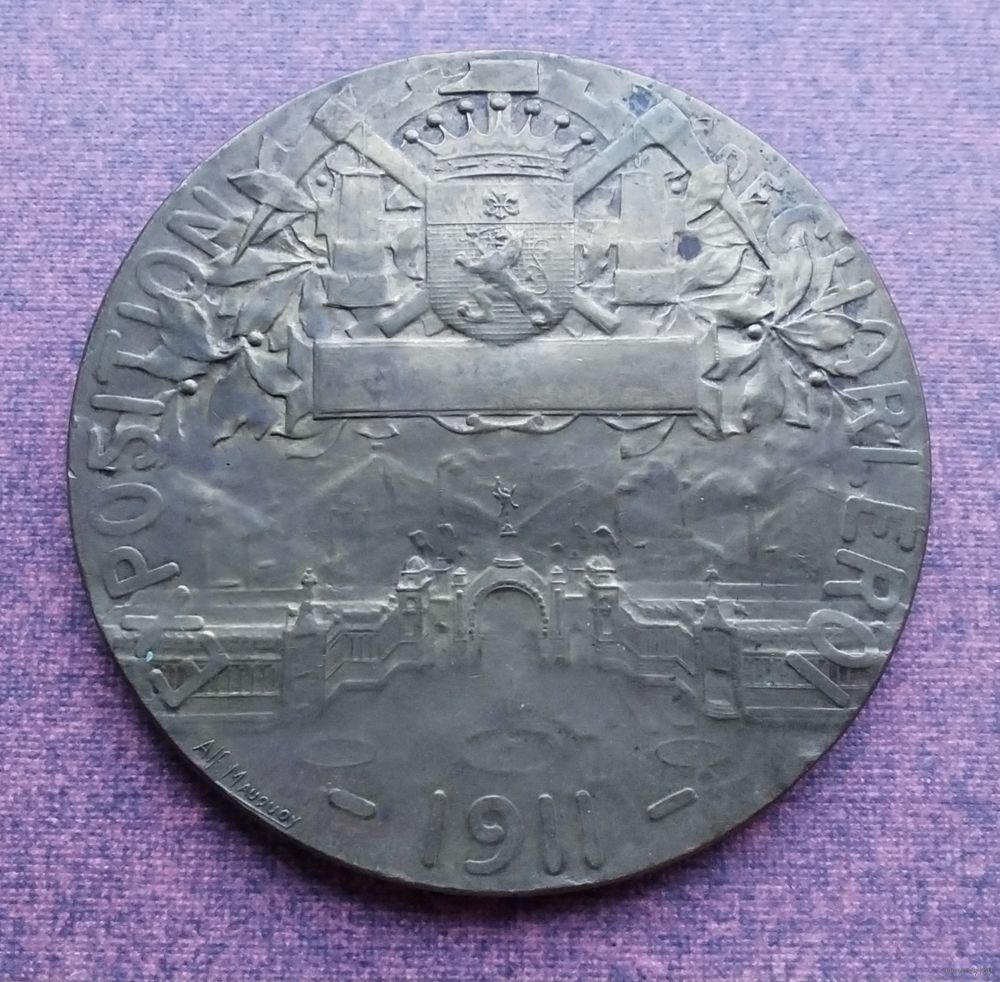 Бельгия. Международная выставка в Шарлеруа 1911 года. Медный сплав. Диаметр - 60 мм. Вес - 85 гр. Оригинал. Оплата на карту Беларусбанка.