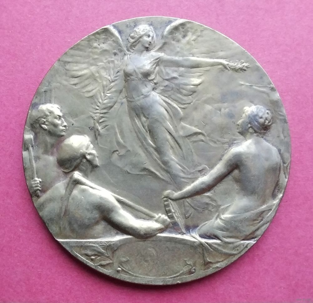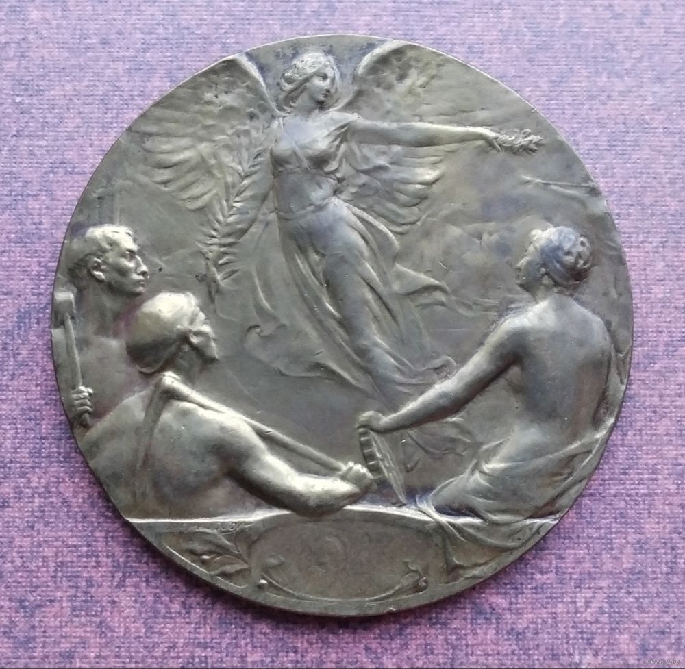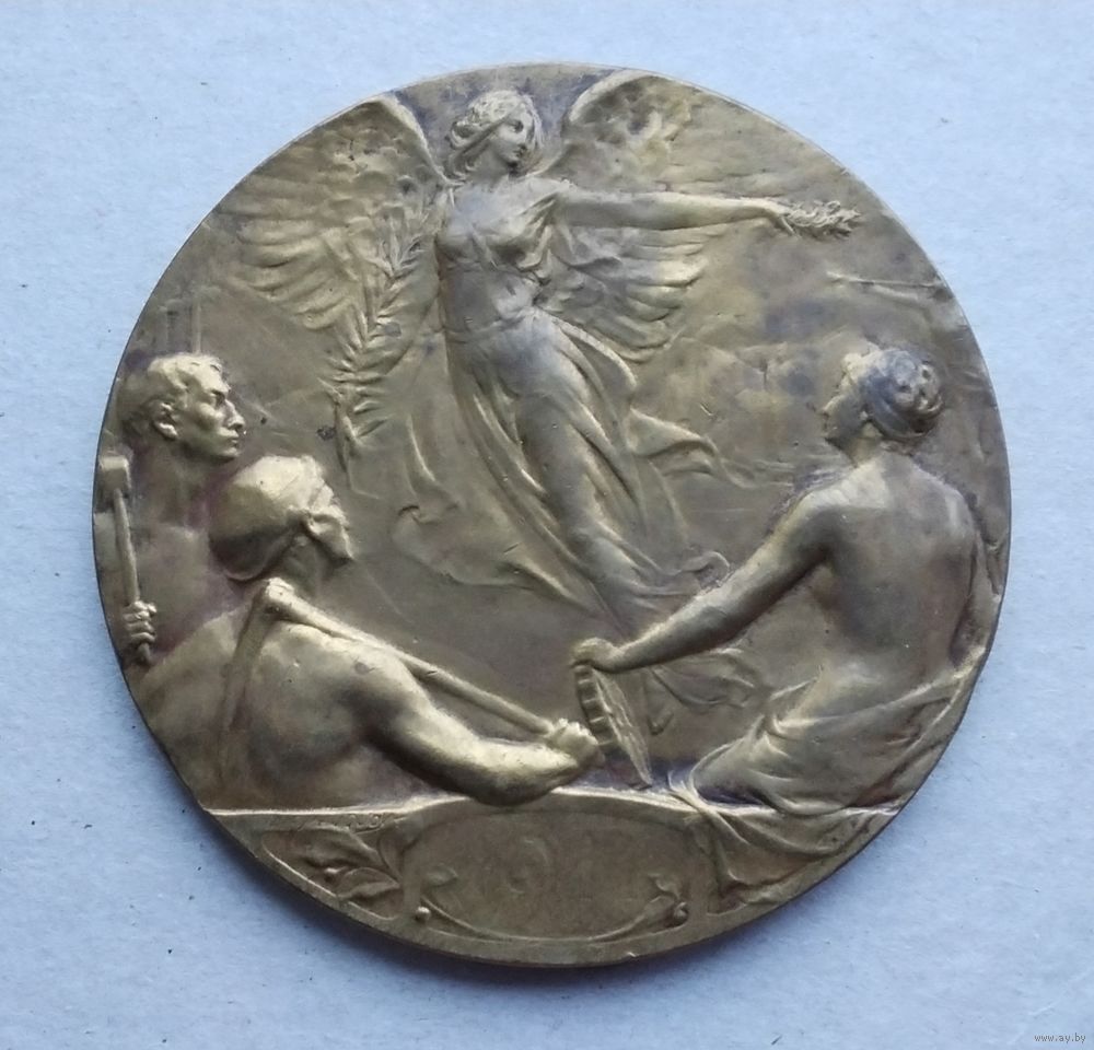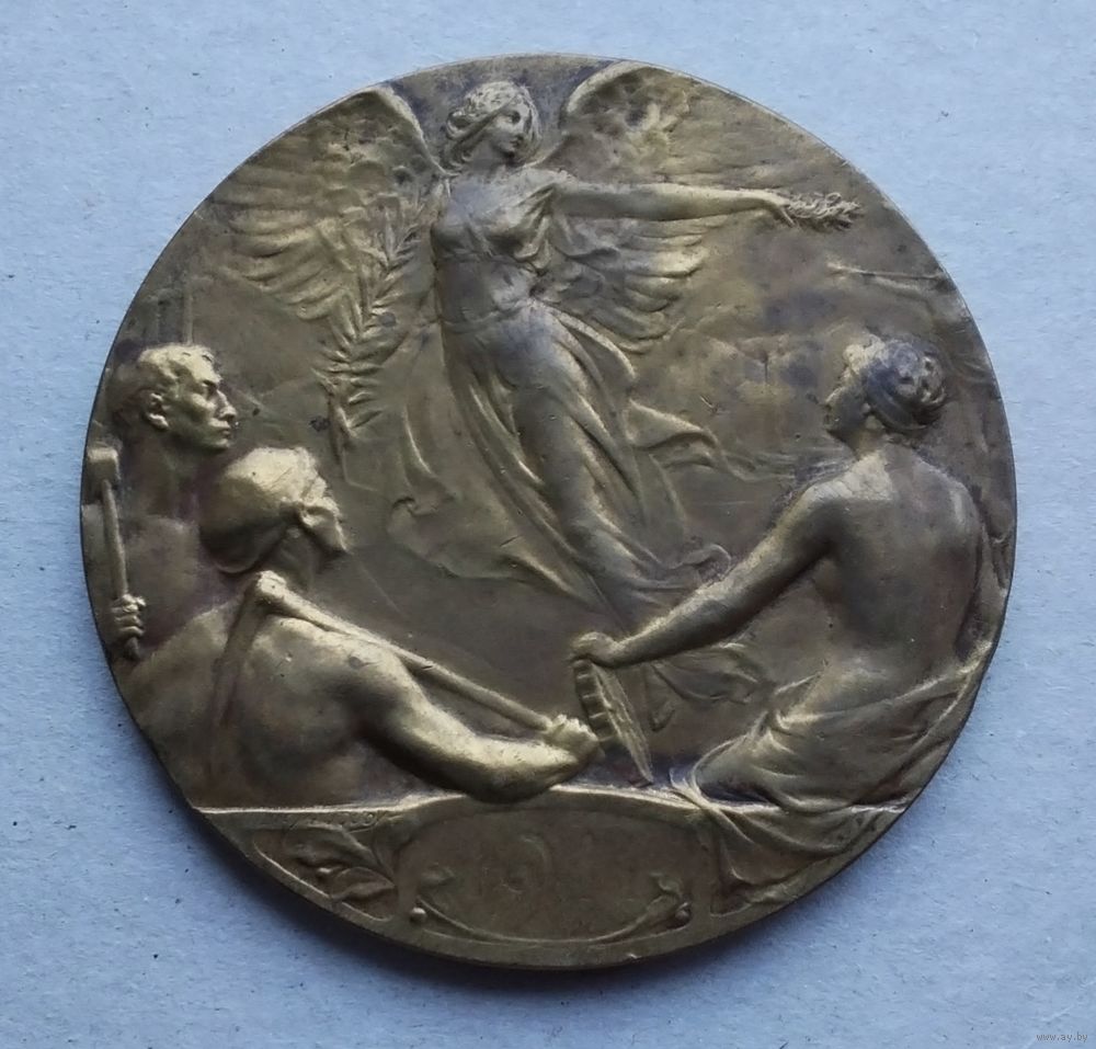 Бельгия. Международная выставка в Шарлеруа 1911 года. Медный сплав. Диаметр - 60 мм. Вес - 85 гр. Оригинал. Оплата на карту Беларусбанка.