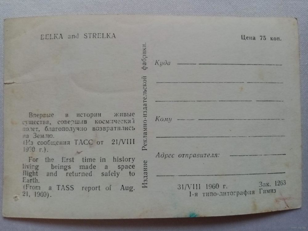Белка и Стрелка фотооткрытка 1960 г космос