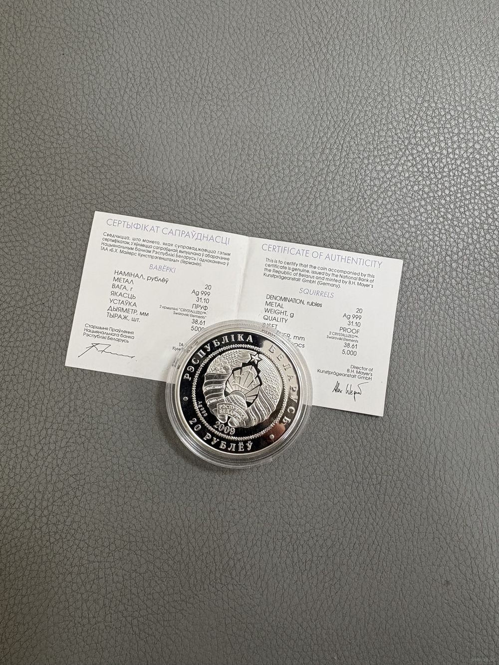 Белки, 20 рублей, 2009, идеальное состояние, сертификат в комплекте, с рубля!!!