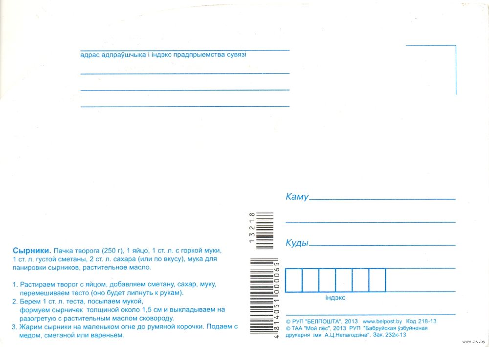Белорусская кухня: сырники, 2013, глянец, чистая. Передача в Витебске возле ратуши. Пересылка в другой город за счёт покупателя по тарифам Белпочты либо Европочты после 100% предоплаты.