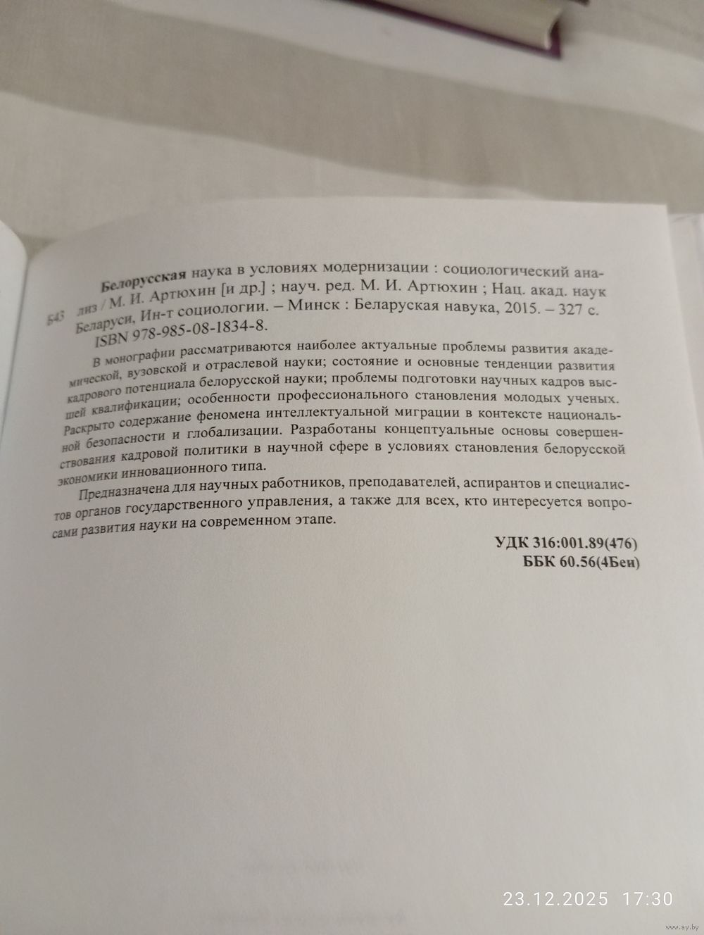 Белорусская наука в условиях модернизации. Социологический анализ. Редкая. Мн. Беларуская навука 2015. В прекрасном состоянии, тв переплет, увеличенный формат. 327 с. Тираж 120(!!). Возможность отправки Белпочтой, полная предоплата на карту Беларусбанк