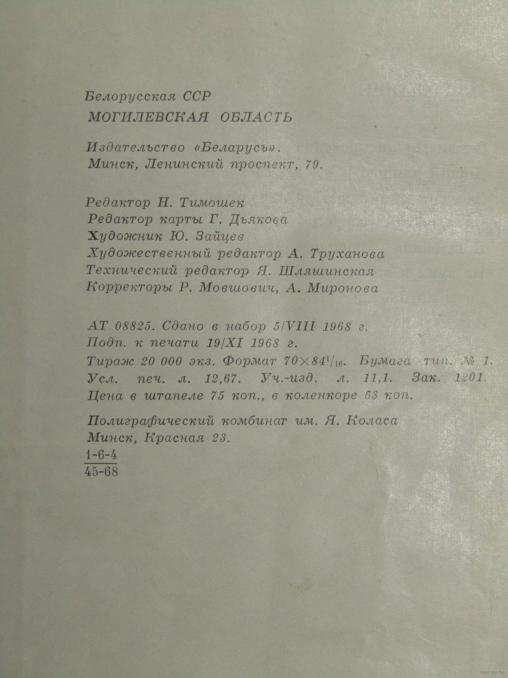 "Белорусская ССР". "Могилевская область". Книга. 1968 г.и.