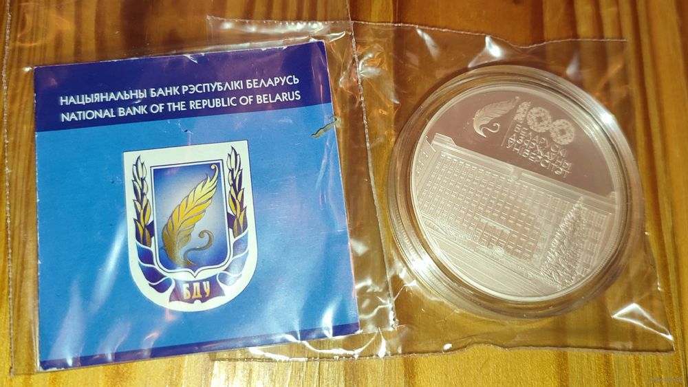 Белорусский государственный университет. 100 лет БГУ. 20 рублей Серебро. Тираж 999 шт. Состояние банковское, сертификат Торг по звонку (420 руб.)
